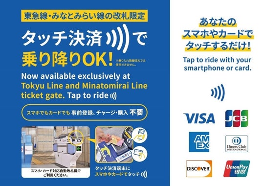 本実証実験は、事前の乗車券購入が不要で、お手持ちのタッチ決済対応のカード(クレジット・デビット・プリペイド)や、同カードが設定されたスマートフォン等を、改札機に新たに設置する専用リーダーにかざすことで、そのまま改札を通過、スムーズにみなとみらい線にご乗車いただけるようになるものです。