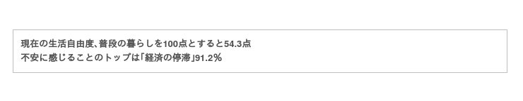 感染拡大以前の普段の状態を100点としたとき、現在の状況下における「生活自由度」が何点くらいかをきいたところ、54.3点となりました。