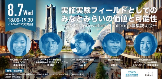 日本企業の新規事業開発やイノベーション創出を支援する事業共創カンパニーである株式会社Relic(本社:東京都渋谷区、代表取締役CEO:北嶋貴朗、以下、Relic)は、未来ビジネスを共創する産学公民の連携基盤となる組織「横浜未来機構(会長:梅原出)」とともに、みなとみらいエリアを舞台に横浜ランドマークタワーを始めとする建物やグランモール公園等の公共空間などを対象とした実証実験を支援するプログラム「MM21 Innovation Challenge」を運営し、エントリーを開始したことをお知らせします。