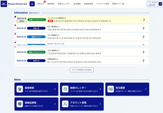 「Mizuno Partner Hub」は、全国の販売パートナーが利用できるBtoBポータルとして構築されました。