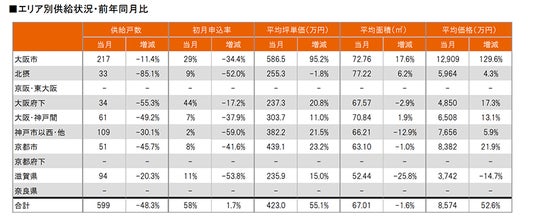 集計対象エリアは首都圏及び関西で、それぞれのエリア別相場情報、需給動向、着工件数等を集計しました。