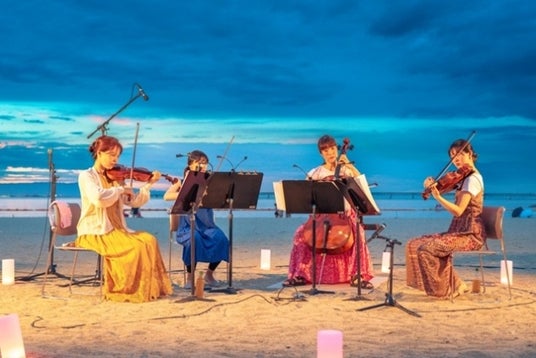 サザンビーチにて「日本センチュリ―交響楽団」による生演奏会を実施いたします。ヴァイオリン、ヴィオラ、チェロによって奏でられる「弦楽四重奏」で、ディズニーをはじめとしたビーチにぴったりな演目を演奏予定。夕暮れ時のゆったりとした空気とともに、公園内は音楽と芸術の華やかな世界に包まれます。