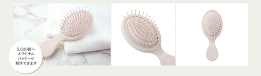 竹繊維を約30%配合したクッションヘアブラシ。持ち手は丸みを帯びたデザインで、フィット感があり手に馴染みます。横5.5cm×縦14cmと手のひらサイズのコンパクトさで持ち運びにも便利。先端が丸く作られたピンが頭皮にやさしく、美しい髪へ導きます。白基調のマットな質感がおしゃれで、客室にさりげなく置くだけで、洗練されたおもてなしの空間を演出します。日常使いもしやすいため、宿泊後にお持ち帰りいただき、二次利用していただけるアイテムです。