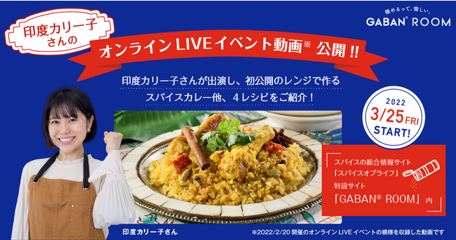 2022年2月20日(日)に、消費者の皆様と双方向のコミュニケーションを図り、製品・コンテンツ開発に活かすことを目的に、これまでの「GABAN(R) ROOM」と「スパイスオブライフ」のキャンペーン参加者を無料招待し、『印度カリー子さんが生出演!GABAN(R)スパイスレシピをLive配信で堪能しよう』と題したYouTubeライブを実施しました。