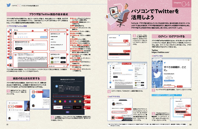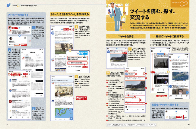 操作方法は、どこでも自由に活用できるスマホ用Twitterアプリとじっくり腰を据えて利用可能なパソコン向けのウェブブラウザ版Twitterの両方を解説。あなたのスタイルに合わせて、より便利に使いこなせます。