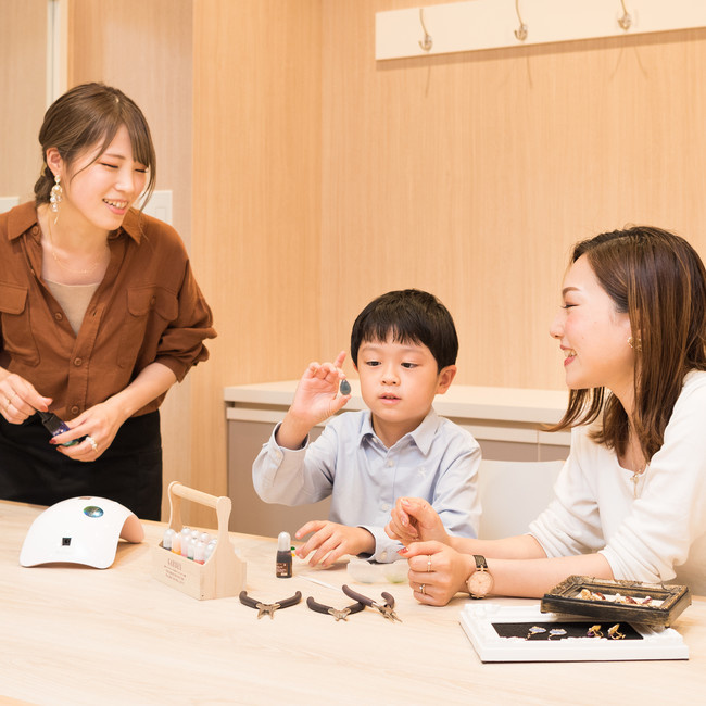 全国に約80店舗を展開するパーツクラブ・姉妹店のグランプレールでは、スタッフがお客様に教えながらアクセサリーを一緒に作る「手作り教室」を開催しています。