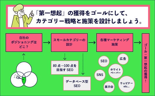 本書は、自社の製品・サービス、ブランドが「第一想起」を獲得することをゴールに設定し、その道筋となる戦略と戦術(施策)を体系的に学んでいただけるよう構成しています。