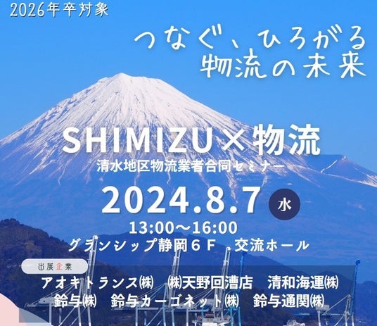 鈴与グループの総合人材サービス会社の株式会社ベルキャリエール(本社:静岡市、代表取締役社長:杉谷行雄)は、2024年8月7日(水)にグランシップ静岡にて、2026年卒業見込の学生を対象とした清水港エリアの物流業者6社を集めた物流業者合同セミナーを開催します。