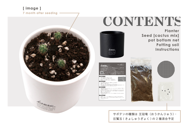 今回は「サボテン栽培キット」と、植物の成長が絵画のように楽しめる「育てるアート」の2種を展開。