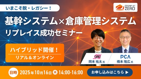 クラウド型在庫管理システムのリーディングカンパニーであるロジザード株式会社(東京都中央区、代表取締役社長:金澤 茂則、以下:ロジザード)は、『いまこそ脱・レガシー!基幹システム×倉庫管理システム リプレイス成功セミナー ~システムリプレイスのトレンド、事例を徹底解説!~』を2025年10月16日(木)14時より開催することを決定、お申し込み受付を開始しましたのでお知らせいたします。