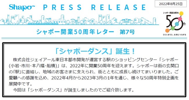 開業50周年特設サイト https://www.jtk.jp/shapo50th_anniversary/