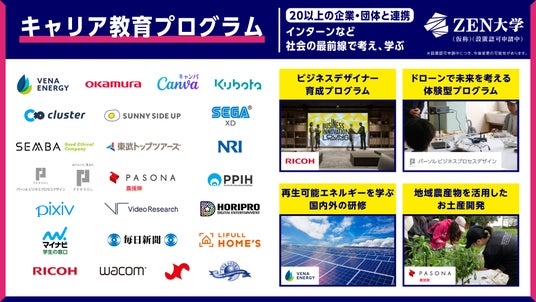 ZEN大学は20以上の企業・団体と連携したキャリア教育プログラムを提供予定