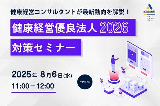 株式会社アドバンテッジリスクマネジメントは、2025年8月6日(水)に健康経営の推進担当者様を対象としたWebセミナー「健康経営優良法人2026対策セミナー」を開催いたします。
