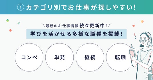 職種ガイドや過去のお仕事採用事例の一覧など、お仕事につなげやすくするためのサポートを拡充。理想のキャリアを目指すための学習に活かしていただくことができます。