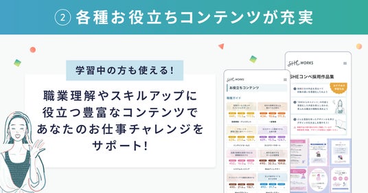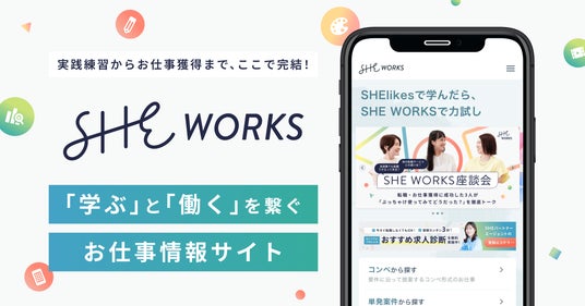学ぶから働くまでを支援する女性向けキャリアスクール「SHElikes(シーライクス)」を運営するSHE株式会社(所在地:東京都港区、代表取締役CEO/CCO:福田恵里、以下SHE)は、SHElikes受講生向けページに新機能「SHE WORKS」を提供開始します。