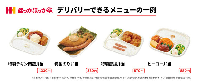※1・・・特製のり弁当、特製唐揚弁当、特製チキン南蛮弁当は出前館限定メニュー。(関西のみ/2月19日販売開始。販売地域であっても一部店舗対象外の場合もございます。)