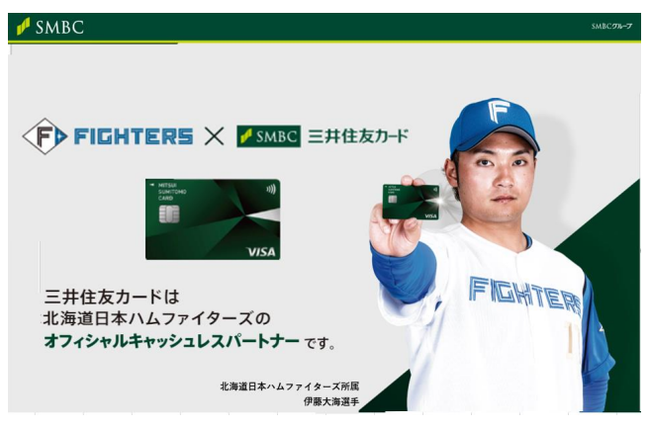 SMCCは、エスコンフィールド内に設置された世界最大級の大型ビジョンにて、ファイターズの伊藤大海選手が出演する新CM「三井住友カード(NL)~ファイターズ伊藤大海選手【お得】篇~」を放映いたします。