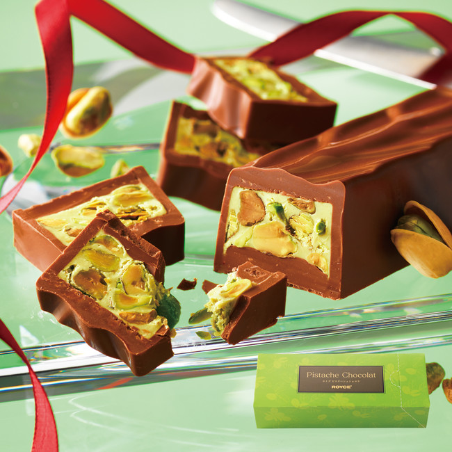 毎年バレンタインデー限定商品として人気のあったピスターシュショコラが、レギュラー商品となりました。香ばしくコク豊かなピスタチオクリームに、深煎りしたピスタチオと塩がけしたピスタチオの2種類を混ぜ込んで、口どけの良いミルクチョコレートにとじ込めました。ピスタチオの香ばしく旨みあふれる魅力を引き出した、ピスタチオづくしの味わいを存分にお楽しみください。