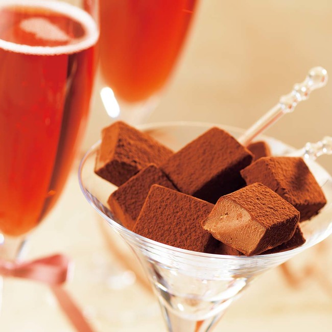 美しいルビー色をした世界中で愛されているカクテル「キールロワイヤル」。シャンパンとカシスリキュールでつくられる、ほんのり甘酸っぱくてフルーティな味わいを生チョコレートにしました。