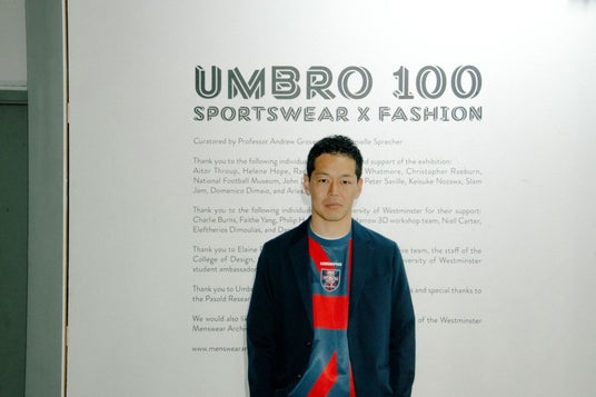 ファッション研究で権威のあるイギリス・ウェストミンスター大学において、創業100周年を記念したアーカイブエキシビション『UMBRO 100: SPORTSWEAR x FASHION(アンブロ 100:スポーツウェア×ファッション)』が4月28日まで開催されています。開催前夜に行われた世界各国の『UMBRO』関係者が集まったパーティにて、この「アンブロ100周年限定コレクション」は発表されました。