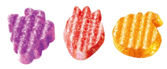 味は「みかん味」と「ぶどう味」はそのままに、新たに「いちご味」を追加し、グミのフルーツ味として人気の高い3つの味を1袋でお楽しみいただけます。さらに、ソースがからみやすいフジッリパスタをヒントに、表面の酸パウダーが絡みやすい波型の形状にすることでフルーツの味わいをより感じやすくなりました。