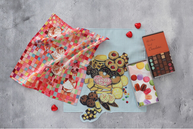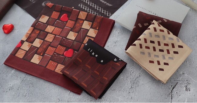 ハッとする色柄や思わず笑みがこぼれるような凝ったデザインなど、ハンカチーフ専門店だからこその個性が光る「チョコレート柄」をご用意。チョコレートと一緒に贈るのはもちろん、甘いものが苦手な方へのプレゼントにもおすすめです。