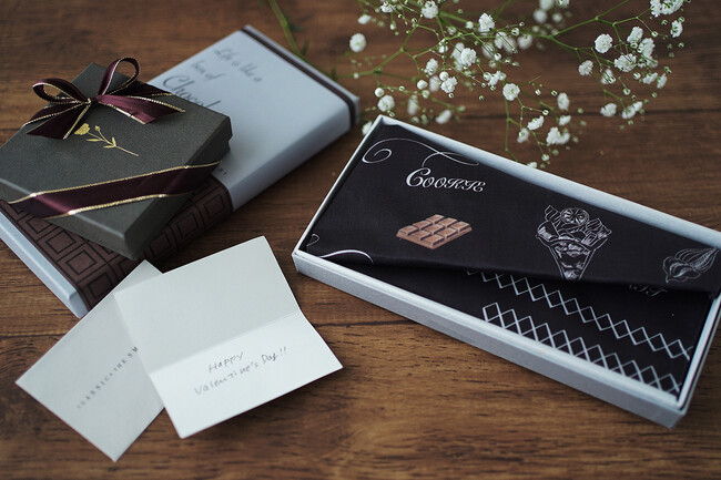 2024年1月12日(金)~2024年2月14日(水)迄、ハンカチーフと紙箱(330円)をご購入のお客様に、板チョコをイメージしたオリジナルラッピングをご用意しております。オンラインショップでは包装紙専門店「REGARO PAPIRO(レガーロパピロ)」とのコラボレーションラッピングも展開します。※無くなり次第終了となります。