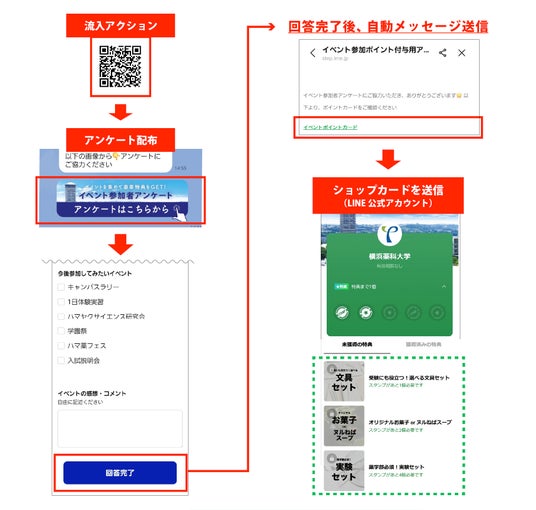 イベント専用QRを読み取り → 自動でアンケート配布&ショップカード送信