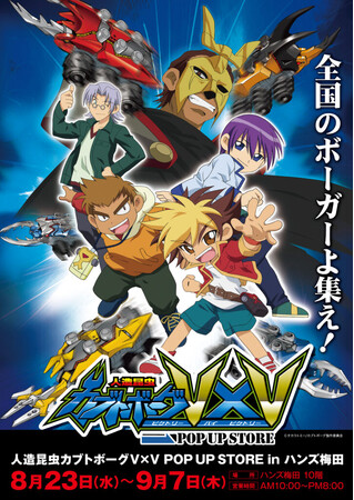 マンガ、アニメ、特撮などの人気コンテンツをテーマにした企画展を開催、運営している株式会社クレイジーバンプは、8月23日(水)よりハンズ梅田にてソフビメーカー【人造昆虫カブトボーグ V×V POP UP STORE in ハンズ梅田】を開催致します。
