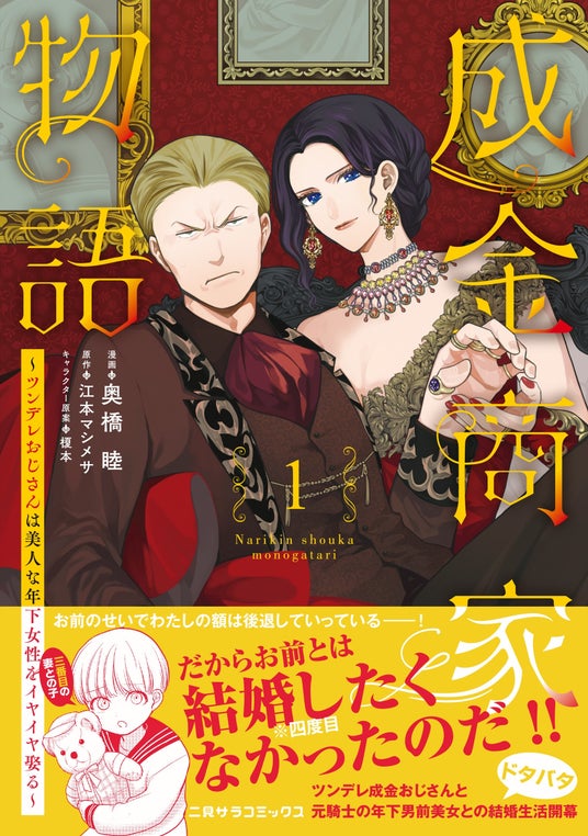SNSやレビューサイトで高評価を集めた江本マシメサ先生の人気原作『成金商家物語 ~ツンデレおじさんは美人な年下女性をイヤイヤ娶る~』が、ついにコミック単行本として、二見書房「二見サラコミックス」より刊行決定!
