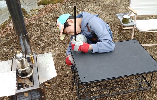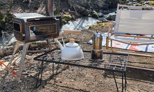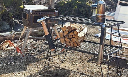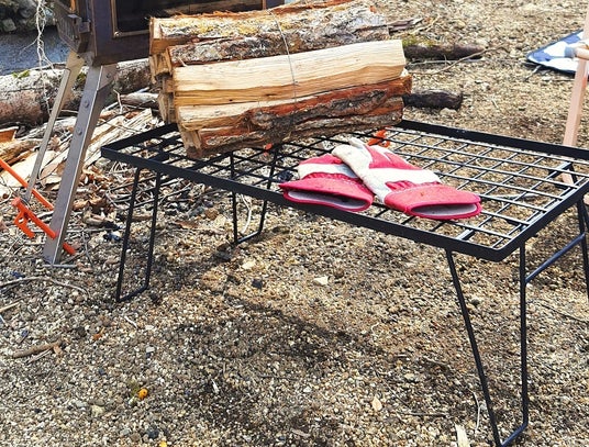 直感的に組み立てられるキャンキャンパーのフィールドラック。薪や熱いものの定位置に最適。