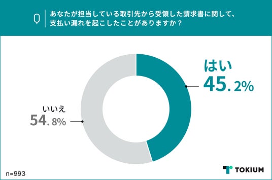 45.2%と約半数が過去に請求書の支払い漏れを経験したと回答しました。