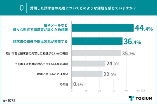 支出管理にまつわるクラウドサービスを提供する株式会社TOKIUM(本社:東京都中央区、代表取締役:黒崎 賢一、以下「TOKIUM」)は、全国の請求書の受領および処理に携わる従業員1,100名を対象に「請求に関する調査」を実施しました。