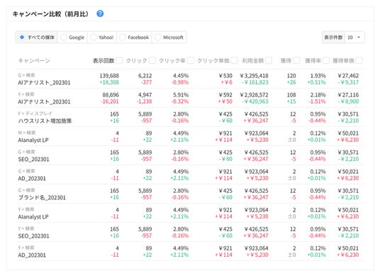 この機能は、媒体を横断して異なるターゲットに向けた広告施策の状況を把握する上で非常に便利です。
