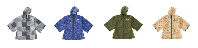 4色展開のカラフルなポンチョ。フルジップ仕様だから着脱が簡単にでき、通学はもちろん、野外フェスなどでも活躍する。あると便利なポケットが配置されており、収納袋付きなので持ち運びも簡単。