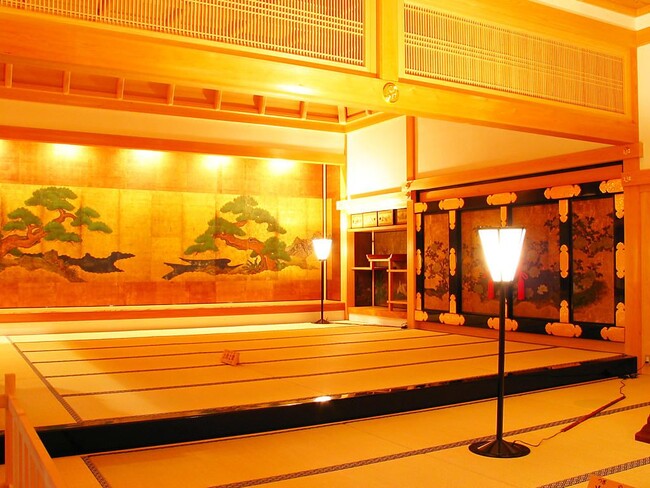 上段の間は付書院、違棚、帳台構、大床を設えた正規の書院造りで、その装飾やしつらえは息をのむ美しさを備えています。通常は入室禁止ですが、フェアでは往時の建築美を体感しながら自由に記念撮影をお愉しみいただけます。