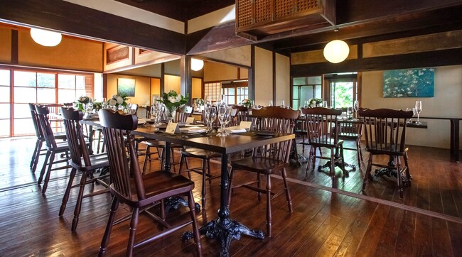 パーティ会場のあるONAE棟は、明治前期に建てられた母屋に現代的な意匠を施したモダンな雰囲気の佇まいで、懐かしくも新しい空間があたたかくふたりの門出を祝福します。まるで我が家のようなぬくもりが宿る空間で、家族・親族・大切なゲストの皆様とテーブルを囲む時間を、ぜひご想像してみてください。