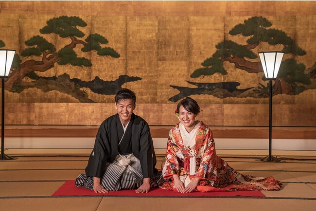 今回のフェアでは、和装のご試着をいただいたのち、大書院そして挙式会場である虎の間をご見学いただき、通常は立ち入ることのできない上段の間でもご自由に撮影を行っていただけます。ぜひ文化財の圧巻の美を体感いただきながら、お二人の挙式への想いをお聞かせください。