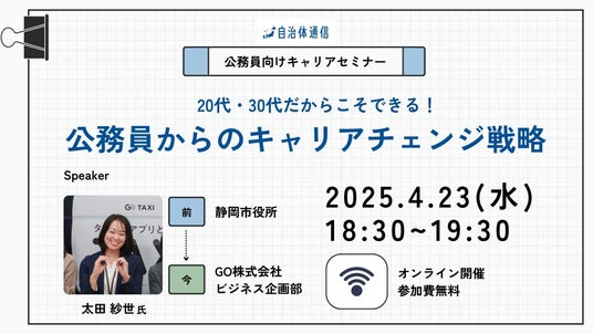 イシン株式会社(本社:東京都新宿区、代表取締役社長:西中 大史、証券コード:143A)が運営する公民共創の先進事例を紹介するメディア『自治体通信』は、自治体通信主催セミナー「20代・30代だからこそできる!公務員からのキャリアチェンジ戦略」を開催いたします。