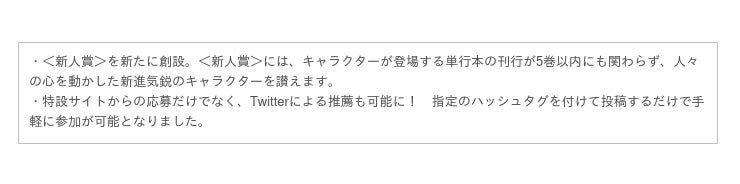 ・期間中は毎日、ノミネートキャラクターの推薦が可能です。