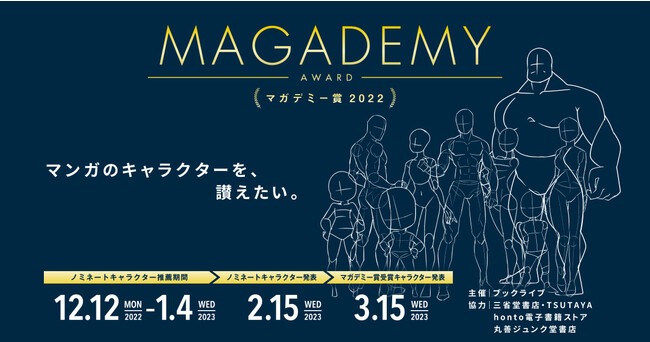 「マガデミー賞」とは、毎日の勇気や感動、そして豊かさを与えてくれるキャラクターたちを讃えることを目的に、2021年に設立されたアワードです。今回の「マガデミー賞2022」では、2022年12月12日(月)~2023年1月4日(水)の期間中、マンガファンの方々から特設サイトおよびTwitterに推薦いただいたキャラクターのうち、ノミネートにご快諾いただいたキャラクターたちを各部門でノミネートいたしました。