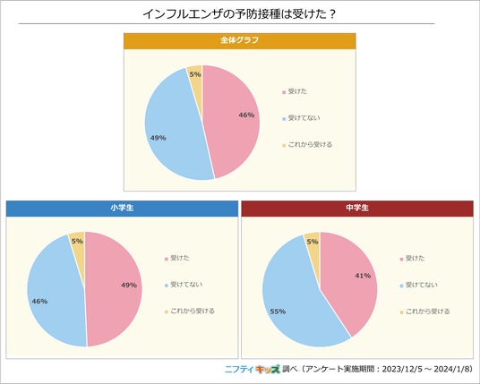 中学生では受けた人は41%に留まり、小学生よりも少ないことがわかります。これから受ける5%の人を加えても、半数以下となりました。