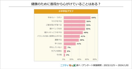 ニフティ株式会社(本社:東京都新宿区、代表取締役社長:前島 一就、以下、当社)は、当社が運営する子ども向けサイト「ニフティキッズ」にて、「健康」に関するアンケート調査を実施し、本日2月8日(木)にレポートを公開しました。