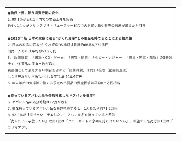 ~ 89.1%が直近1年間での物価上昇を実感、約4人の1人がフリマアプリやリユースサービスでのお買い物や販売の頻度が増えたと回答 ~