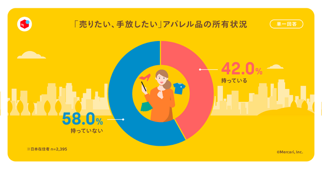 現在売りたい、または手放したいと思うアパレル品を持っているかと質問したところ、42.0%が「持っている」と回答しました。