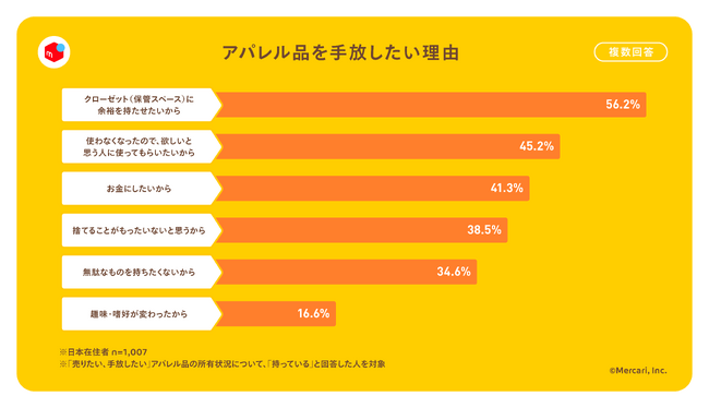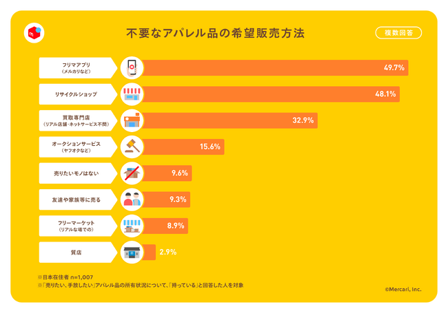 「売りたい・手放したい」理由1位は「クローゼットに余裕を持たせたいから」、希望する 販売方法1位は「フリマアプリ」