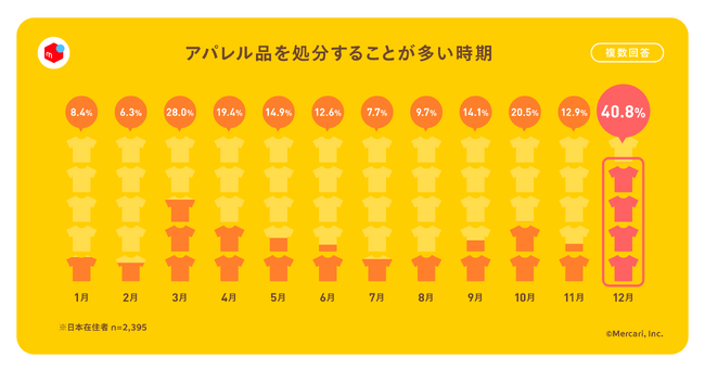 「不要になったアパレル品を処分したい」と思うことが多い時期を質問したところ、「12月」が最も多い回答となりました。