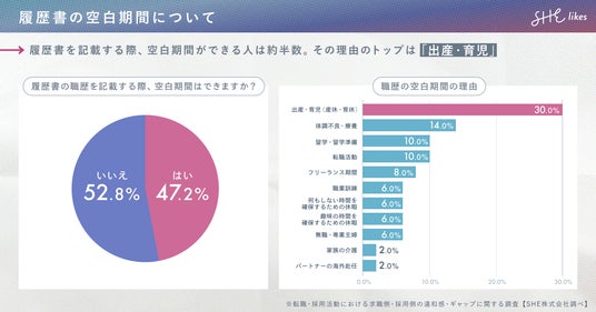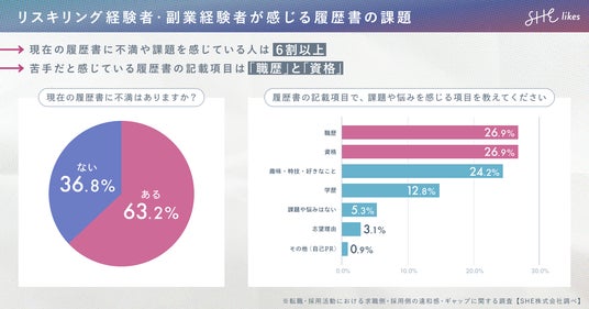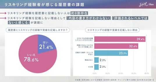 学ぶから働くまでを支援する女性向けキャリアスクール「SHElikes(シーライクス)」を運営するSHE株式会社(所在地:東京都港区、代表取締役 CEO/CCO:福田恵里、以下SHE)と、「キャリアブレイク」を研究・発信する一般社団法人キャリアブレイク研究所(所在地:神戸市垂水区、代表理事:北野貴大、以下:同研究所)は、求職者と採用担当者を対象に「転職・採用活動における求職側・採用側の違和感・ギャップに関する調査」を実施。調査結果を元に、リスキリング実践者や未経験転職の課題を求職側・採用側の双方の視点から解消する履歴書「#逆転履歴書」を作成しました。