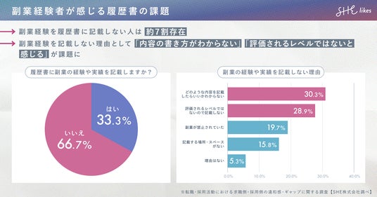 ・副業経験を記載しない理由として「内容の書き方がわからない」「評価されるレベルでないと感じる」が課題に