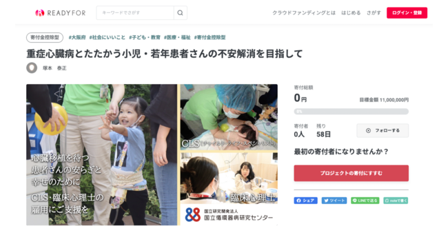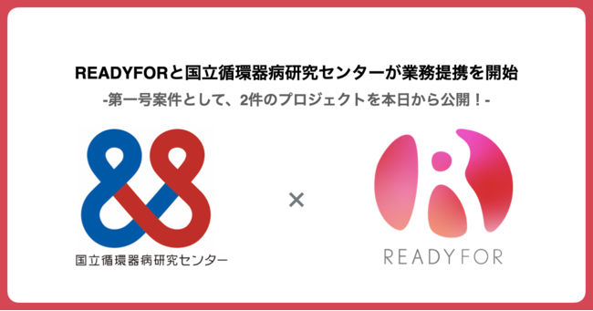 日本初・国内最大級のクラウドファンディングサービス「READYFOR」を運営するREADYFOR株式会社(東京都千代田区、代表:米良はるか)と国立循環器病研究センター(大阪府吹田市、理事長:大津欣也、略称:国循)は業務提携を開始しました。また本日、第一号として1.「急性期脳梗塞に対する、新規血栓溶解薬導入への臨床試験継続へご支援を」と2.「重症心臓病とたたかう小児・若年患者さんの不安解消を目指して」の2件のプロジェクトを公開いたしました。